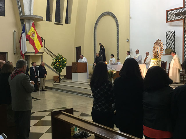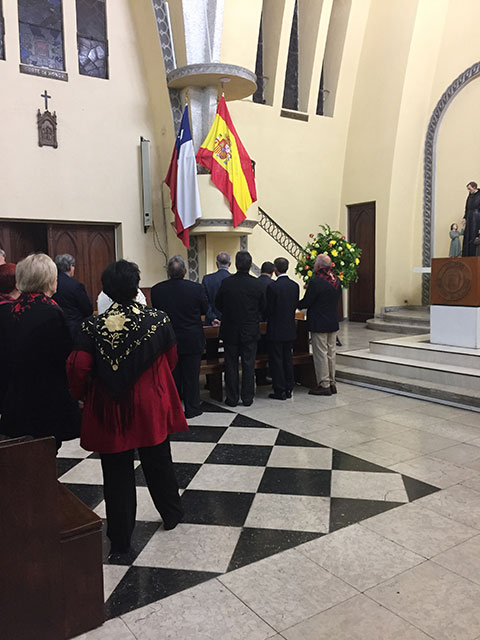 Asistieron a esta Eucaristía, el Ilmo. Sr. Gonzalo Vega Molina Ministro Consejero de la Embajada del Reino de España, el Ilmo. Sr. Cónsul General del Reino de España D. Juan Carlos Alonso Sánchez, el Consejero de Empleo y Seguridad Social de la Embajada del Reino de España D Carlos Tortuero Martin y señora, el Consejero Coronel de la Guardia Civil D Miguel Estévez, la Presidente del Consejo de Residentes Españoles en Chile Da. Rocío Pérez del Campo, el Presidente de la Colectividad Aragonesa de Chile D. Eugenio Peña Galán junto a todo el directorio, socios de la Colectividad Aragonesa y miembros de la colonia española residente.